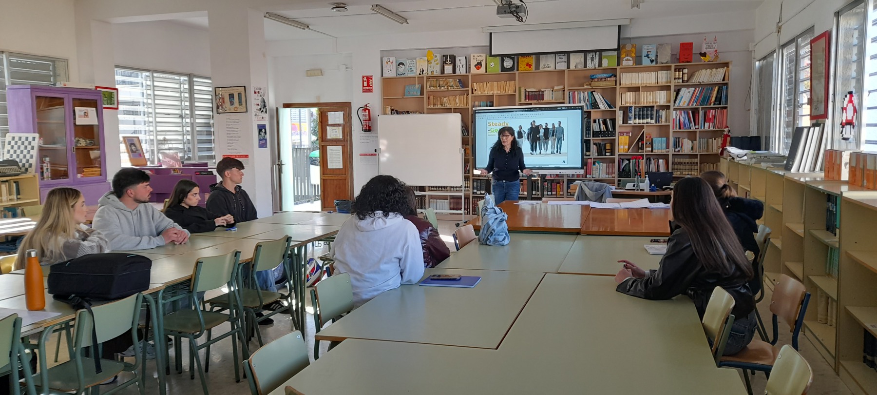 Por la tarde acudimos a la escuela para realizar las actividades que habíamos planteado dentro de nuestro acuerdo de aprendizaje. El tema a tratar, el agua. El alumnado adulto de la escuela boloñesa nos expuso su trabajo “Bolonia, ciudad del agua”, en diferentes idiomas, ilustrando acerca de la importancia histórica del agua en esta ciudad desde el punto de vista económico, social y cultural. Tras esto, nuestros alumnos presentaron su trabajo acerca del agua en el mundo rural, y más concretamente en la zona de los Guájares; una presentación también bilingüe que despertó el interés de nuestros interlocutores, con los que interactuamos activamente, salvando la barrera lingüística con nota. Hemos quedado muy sorprendidos al tiempo que emocionados por el trabajo que nuestros colegas llevan a cabo, así como por las historias del alumnado y su esfuerzo y ganas, a pesar de las diferencias y dificultades.