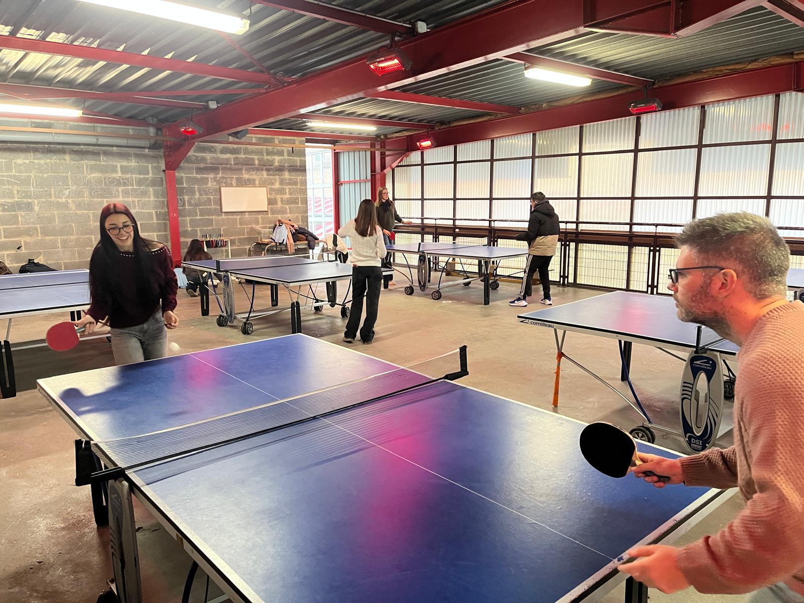 Más tarde, pudimos observar la clase de Educación Física en la cual tuvimos la ocasión de realizar una de las pirámides humanas que estaban practicando. Más tarde, realizamos unos cuantos partidos de tenis de mesa.