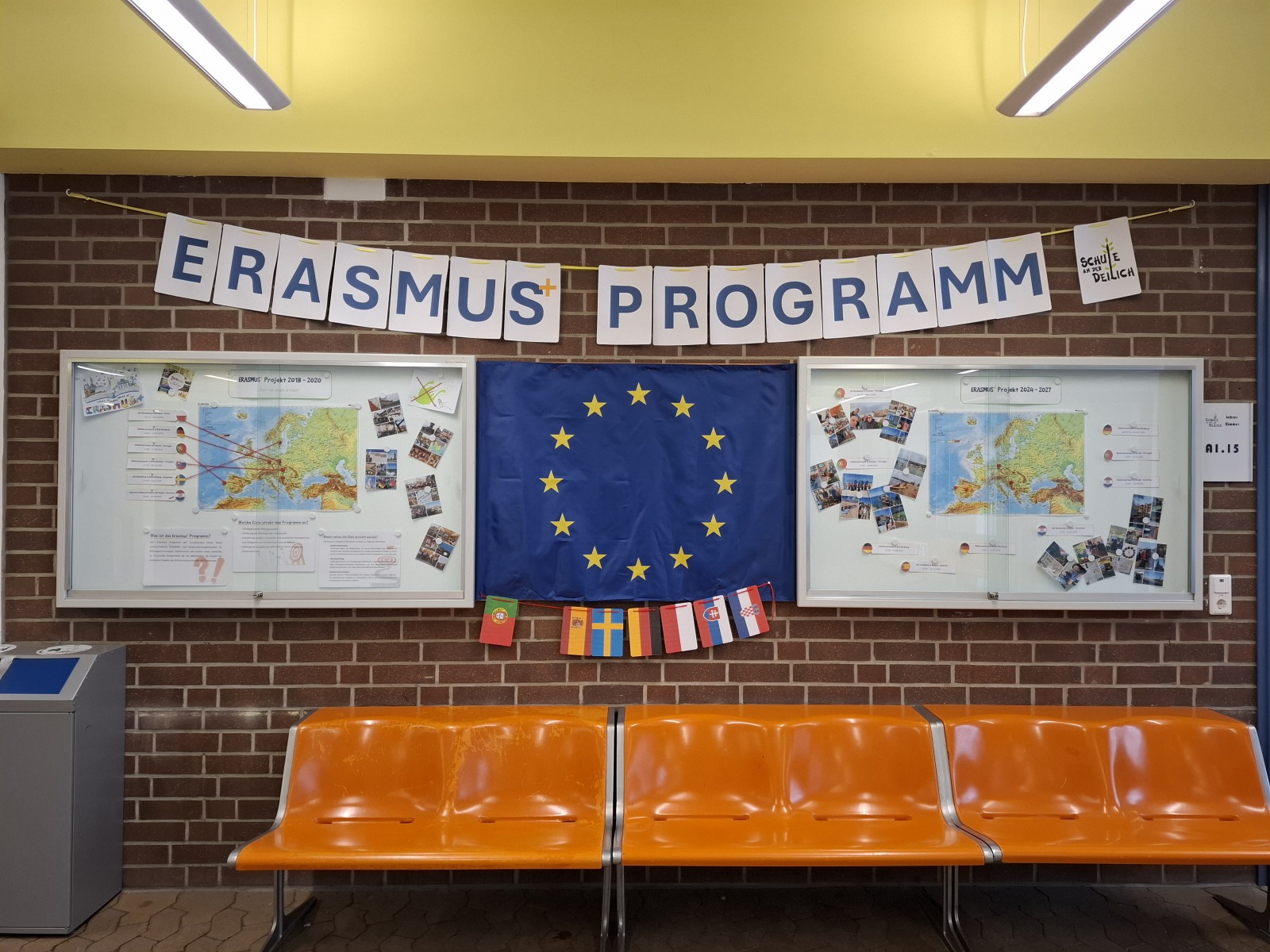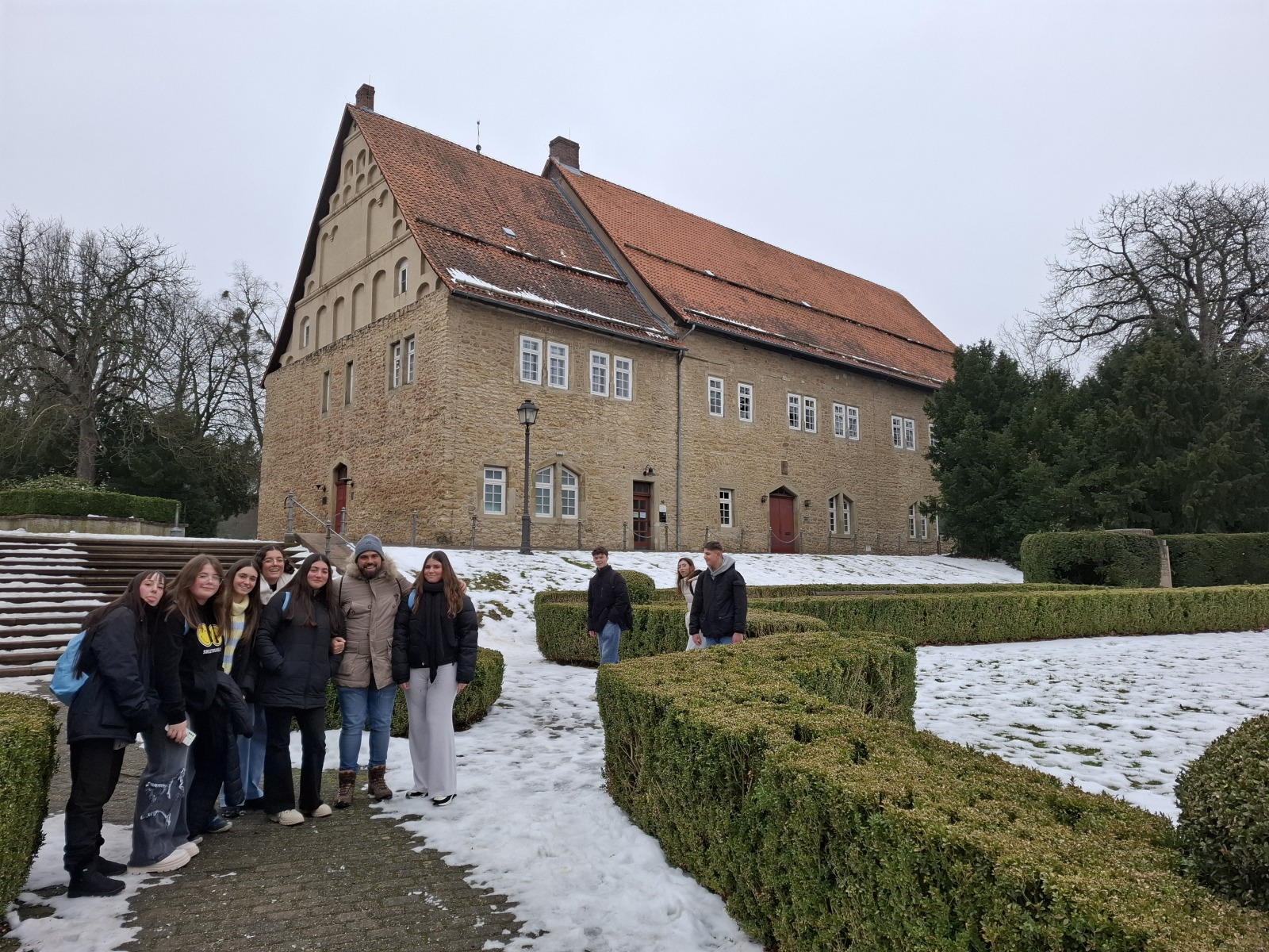 Después de un exhausto viaje a Alemania, nos recibieron con un enorme y delicioso desayuno alemán en nuestro acogedor hotel. Cuando terminamos, en bus nos dirigimos al instituto Schule An Der Deilich, el cual nos encantó a todos. Hicimos una visita muy guiada de casi todas las instalaciones, y descubrimos todas las diferencias que había respecto a nuestro instituto. En concreto, nos impresionó algunas clases, como la de cocina o la de costura. Al final del tramo escolar comimos en el comedor.