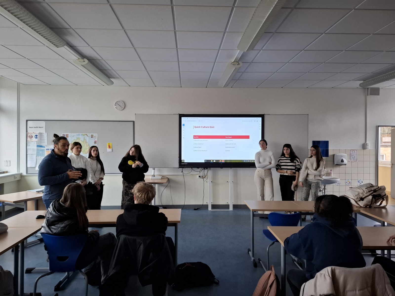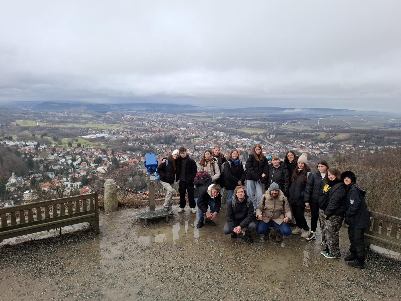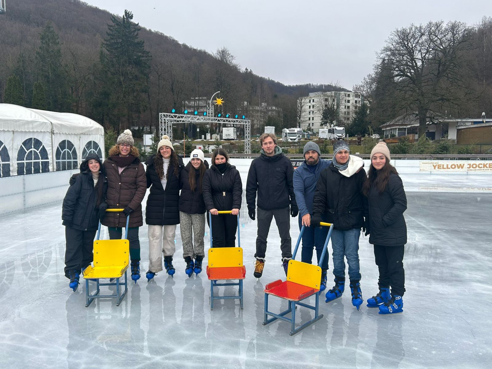 Hoy ha comenzado el día yendo al instituto, presentando una exposición sobre la cultura, festividades y tradiciones de España en tres clases diferentes. Después, hemos tenido la oportunidad de asistir a unas Jornadas de Orientación Profesional para jóvenes. Tras el almuerzo, dimos un paseo hasta el teleférico, donde nos montamos para poder observar durante un rato el maravilloso paisaje de vistas panorámicas de toda la ciudad. Seguidamente, tuvimos dos horas increíbles, maestros incluidos, patinando sobre hielo en una gran pista con música y luces, por último, el día terminó yendo a cenar y a descansar al hotel.
