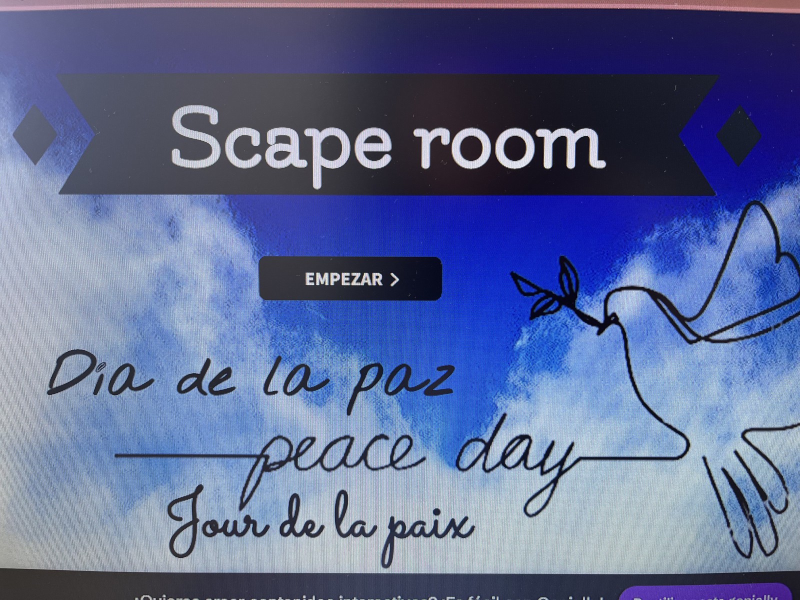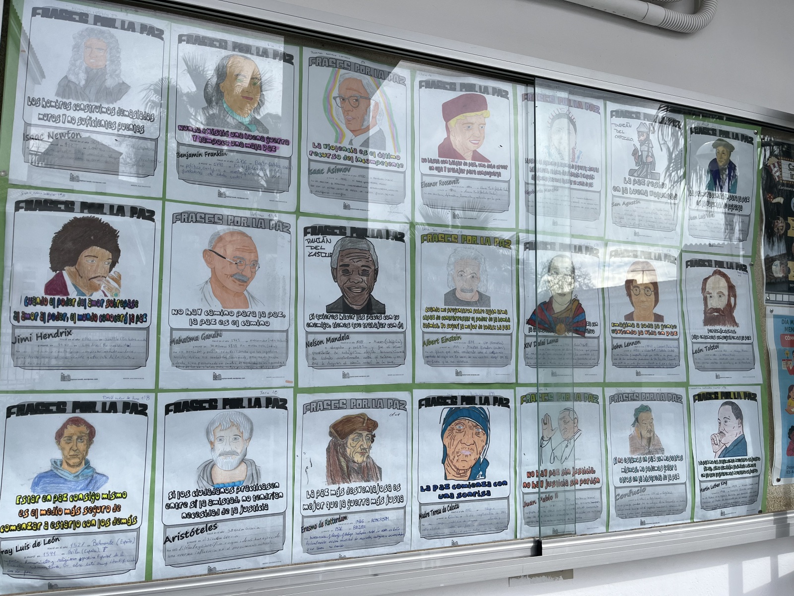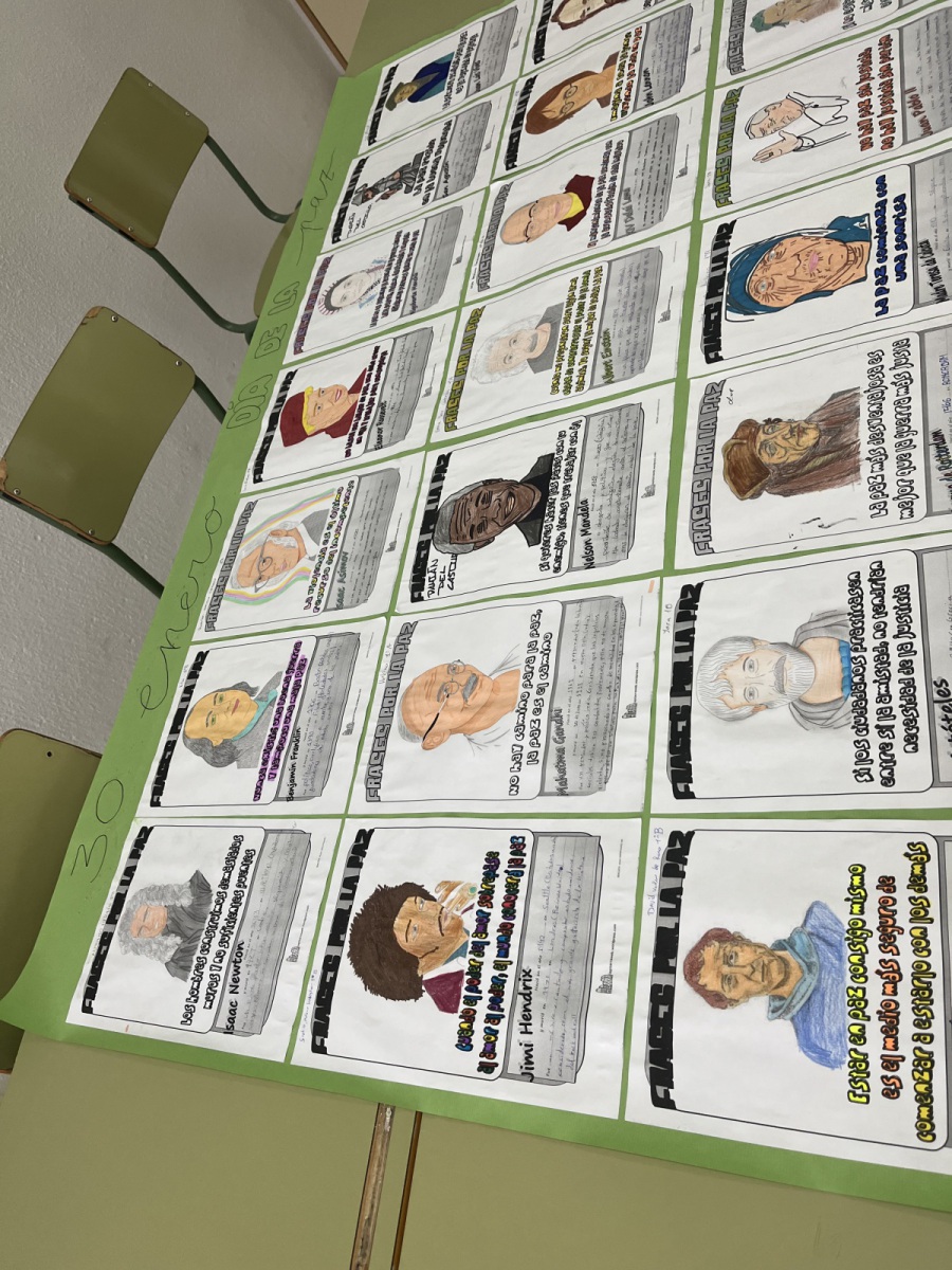 Con motivo de la efeméride del 30 de enero, Día Escolar de la No Violencia y la Paz , se han estado realizando diferentes actividades en las tutorías, como un concurso con el alumnado de 1ºESO de “frases célebres por la paz”, que consistía en la búsqueda de figuras significativas como Gandhi o Mandela, un scape room digital de “Malala”, la visualización de las películas “Cadena de favores”, “Enemigos”, “La ola” o “El circo de las mariposas”, entre otras.