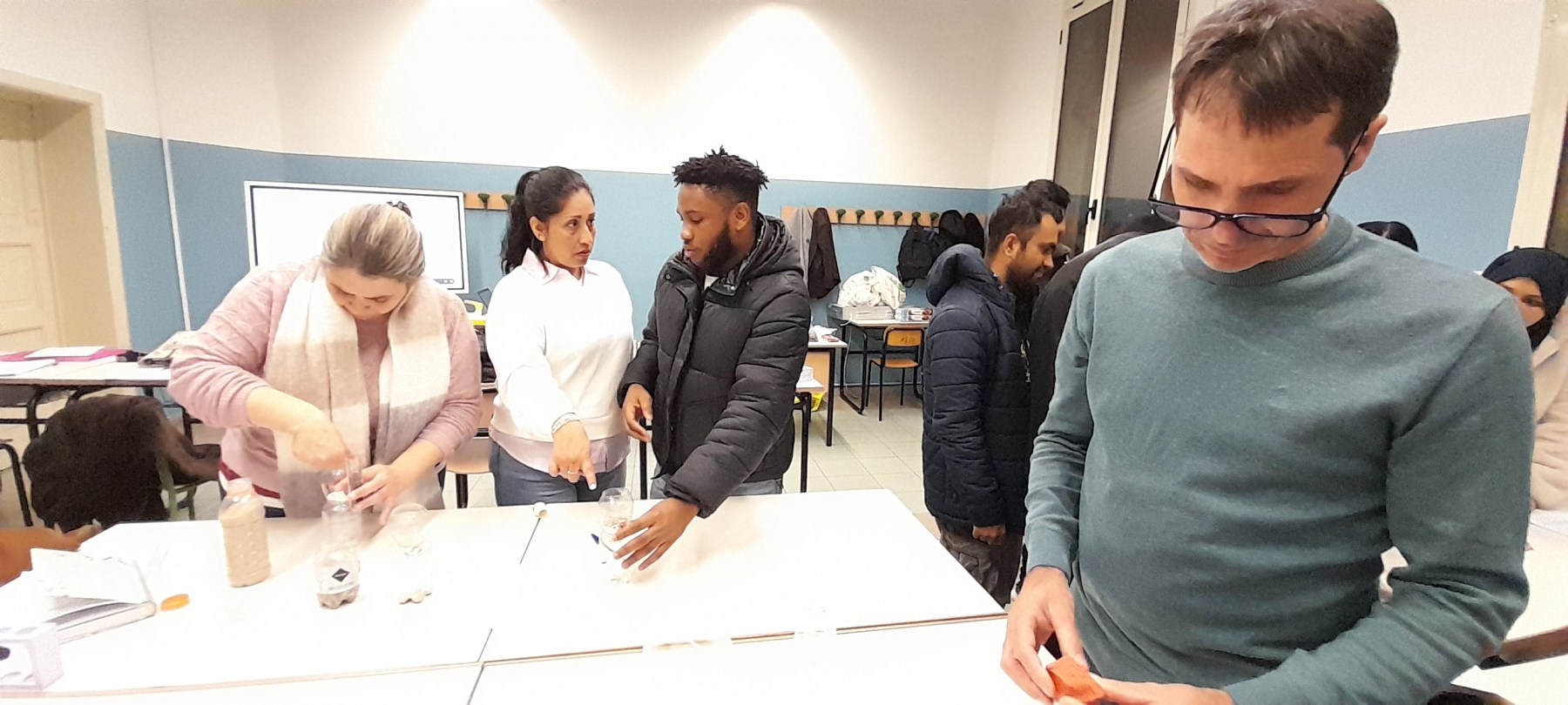 Después de recuperar fuerzas con un exquisito plato de pasta, nos hemos dirigido al CPIA. La tarde del viernes estaba dedicada al Cambio Climático. La profesora de Ciencias nos tenía preparado la realización del experimento “La Corsa dell’Acqua” con el objetivo de hacernos ver cómo se comporta el agua cuando llueve sobre los diversos tipos de terreno y cuándo provoca “il dissesto idrogeologico”. Acordamos que nuestros anfitriones trabajarían el agua fluvial y nosotros hablaríamos de nuestro mar compartido, el Mare Nostrum. La presentación la ha realizado nuestro alumnado en español e inglés. La presentación ha gustado mucho, nuestro alumnado ha sido felicitado con gran entusiasmo y cariño por nuestros anfitriones y el profesorado nos ha pedido compartir el trabajo realizado.