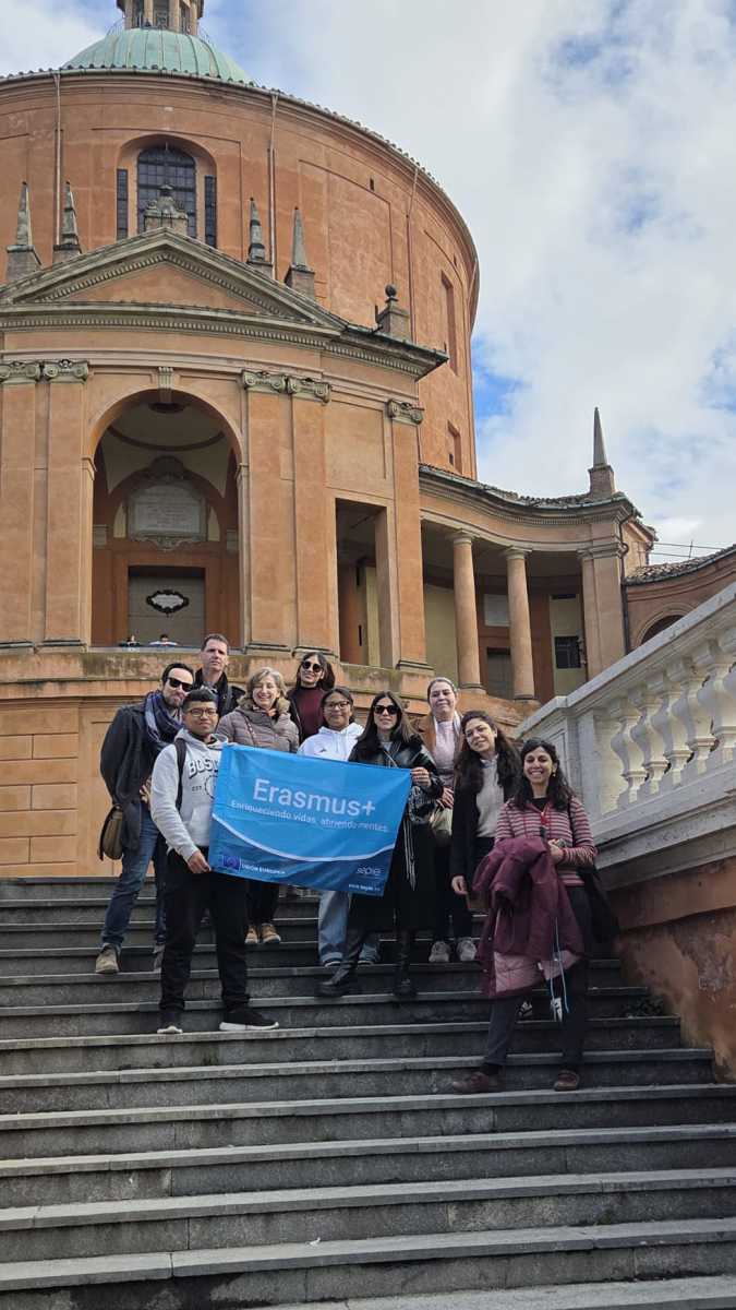 Comienza el día con “la passeggiata “que nos han preparado nuestros anfitriones. Acompañados por dos profesoras y dos alumnos voluntarios nos dirigimos a visitar la Basílica della Madonna di San Luca a la que accedamos recorriendo su famoso pórtico, declarado Patrimonio de la Humanidad por la Unesco. El pórtico de San Luca es reconocido por ser el más largo del mundo, con casi 4 kilómetros de longitud y 666 arcos.
