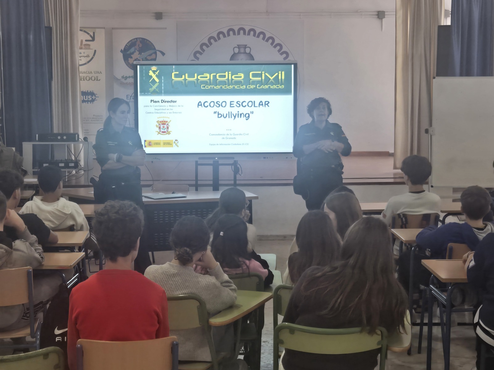 El IES Antigua Sexi, como todos los años, está comprometido en educar a su alumnado para concienciarlos sobre esta problemática, a través de diverso tipo de actividades programadas: charlas, películas, actividades de reflexión y debate, información, etc. que se llevarán a cabo a lo largo del curso escolar. El pasado martes 04 de noviembre tuvimos la visita de la Guardia Civil, que a través del Plan Director, ofrece información al alumnado sobre el acoso, el ciberacoso, delitos de odio, delitos sexuales, etc. Los chicos y chicas tuvieron oportunidad de compartir sus dudas, inquietudes y concienciarse sobre la responsabilidad que tienen para no participar en bromas, burlas, insultos, así como las consecuencias legales a las que se podrían enfrentar. Además, en las horas de tutoría se va a trabajar esta temática para ayudar al alumnado a desarrollar actitudes de empatía, tolerancia, escucha al otro, cómo ayudar si son testigos de comportamientos inadecuados, etc. Se va a hacer a través de materiales de la Fundación ANAR, cortometrajes, juegos, materiales online, guías, otras charlas con diversos profesionales, comics…