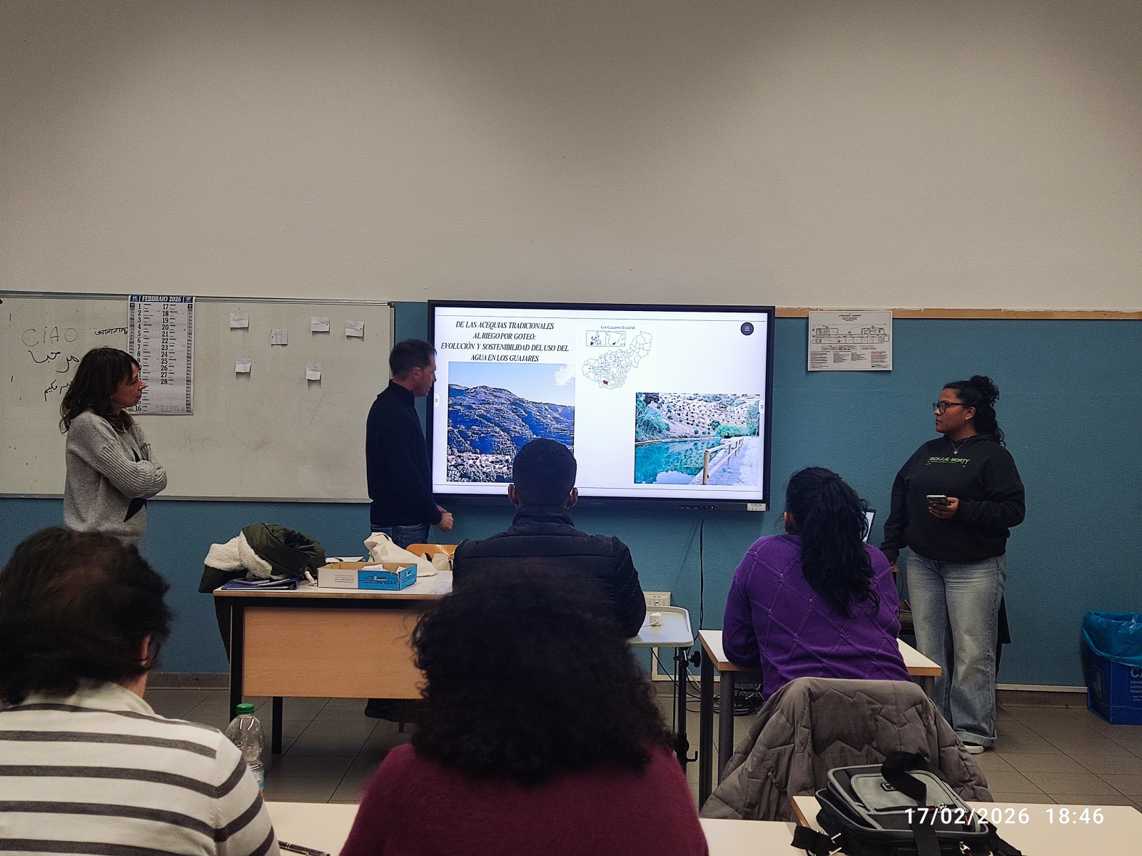 Por la tarde acudimos a la escuela para realizar las actividades que habíamos planteado dentro de nuestro acuerdo de aprendizaje. El tema a tratar, el agua. El alumnado adulto de la escuela boloñesa nos expuso su trabajo “Bolonia, ciudad del agua”, en diferentes idiomas, ilustrando acerca de la importancia histórica del agua en esta ciudad desde el punto de vista económico, social y cultural. Tras esto, nuestros alumnos presentaron su trabajo acerca del agua en el mundo rural, y más concretamente en la zona de los Guájares; una presentación también bilingüe que despertó el interés de nuestros interlocutores, con los que interactuamos activamente, salvando la barrera lingüística con nota. Hemos quedado muy sorprendidos al tiempo que emocionados por el trabajo que nuestros colegas llevan a cabo, así como por las historias del alumnado y su esfuerzo y ganas, a pesar de las diferencias y dificultades.