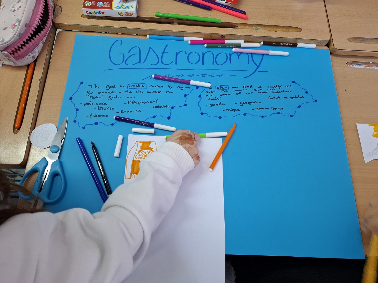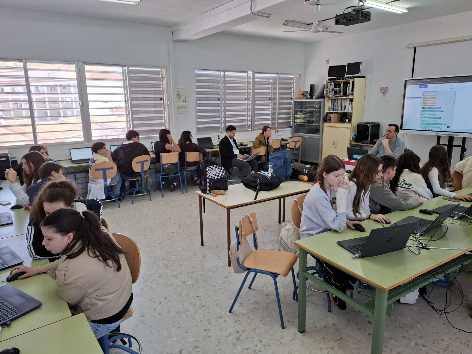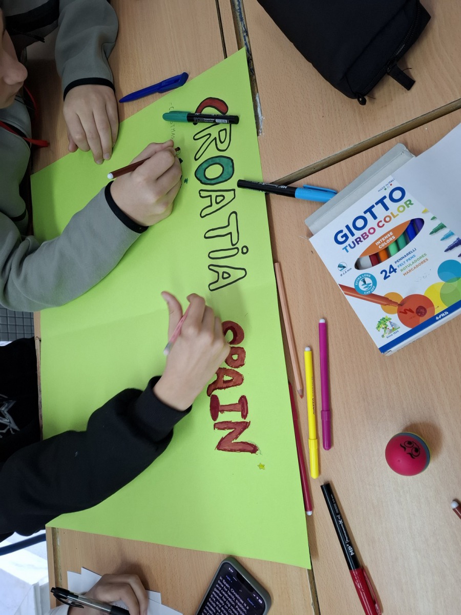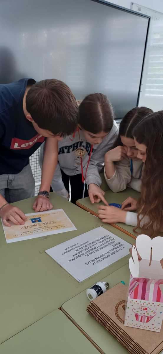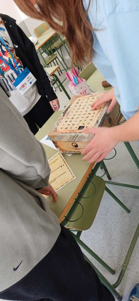 On their third day, the secondary schools from Portugal and Croatia actively observed some of the subjects taught at the school. To begin with, the Croatian students worked on ‘Cultural Posters’ focusing on music, gastronomy, festivities and the most typical expressions of Spain and Croatia with the students of 2nd ESO A. Meanwhile, the Portuguese students worked on the artistic technique known as “cyanotype”, which involves preparing a photosensitive emulsion that is applied to paper and then exposed to sunlight with objects placed on top to reflect the “shadow” of those objects. They then attended a robotics class where they learnt to create apps on their mobile devices using the ‘Thunkable’ website and to put basic programming knowledge into practice. To round off the morning, both teachers and pupils took part in an ‘Escape Room’ where they had to overcome a series of challenges as a team in order to learn some basic knowledge about European democratic values.