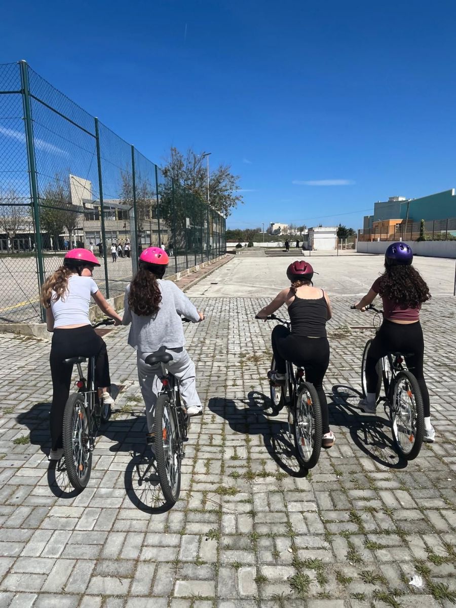 DAY 4: After breakfast we went to the portuguese high school, where we gave a presentation about Almuñécar and visited some classes. We participated in a Portuguese class, where we learned some words in the language, and a physical education class, where we exchanged dances from our countries and did cycling.