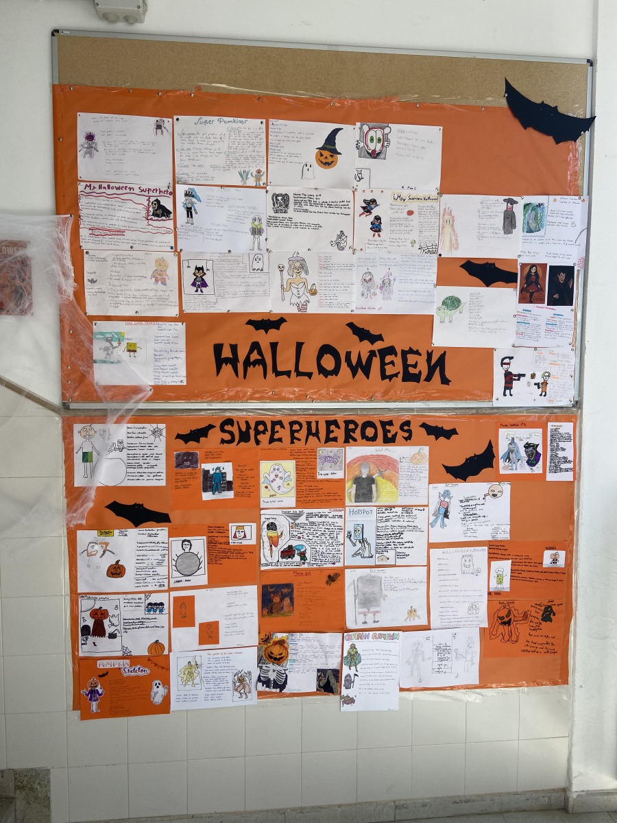 Last Friday, the 31st of October we celebrated Halloween. As part of the Bilingual project, the departments of English, History, Literature, French, and PE organised many different activities and we had several Halloween contests: best Halloween superhero , best cake , best costume , best decorated door and best Hallowen story. The result was amazing: lots of scary and fun superheroes, some wonderful and tasty cakes, really creative and frightening stories, spooky costumes and super imaginative and creepy doors. It was really difficult to choose a winner!!