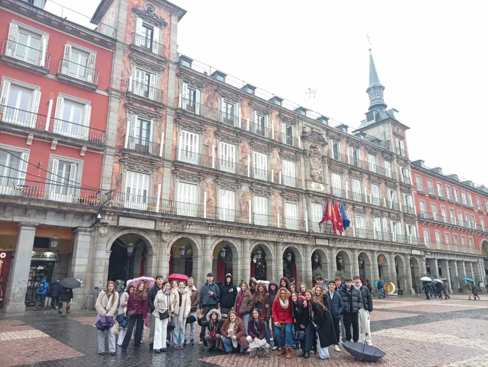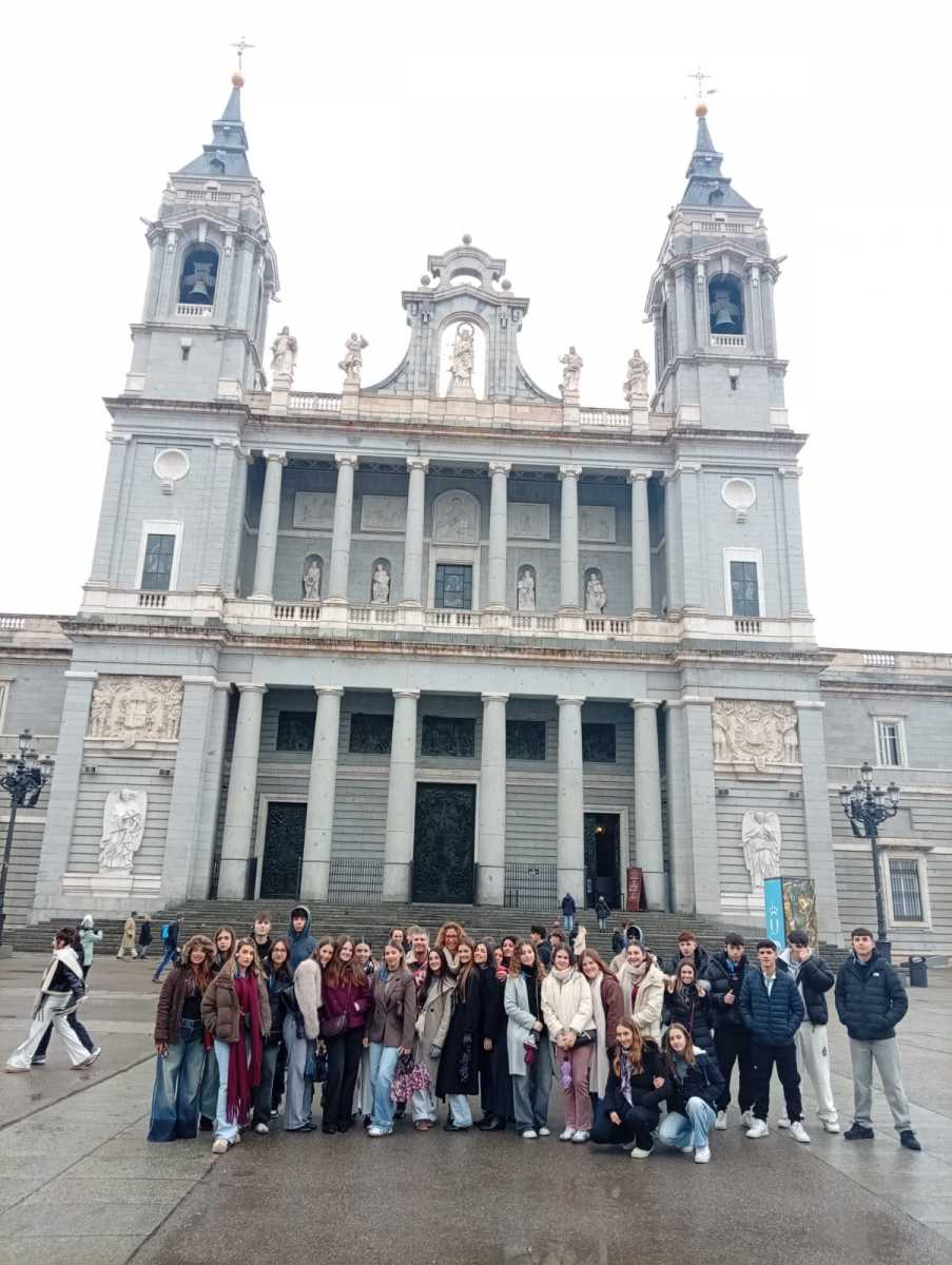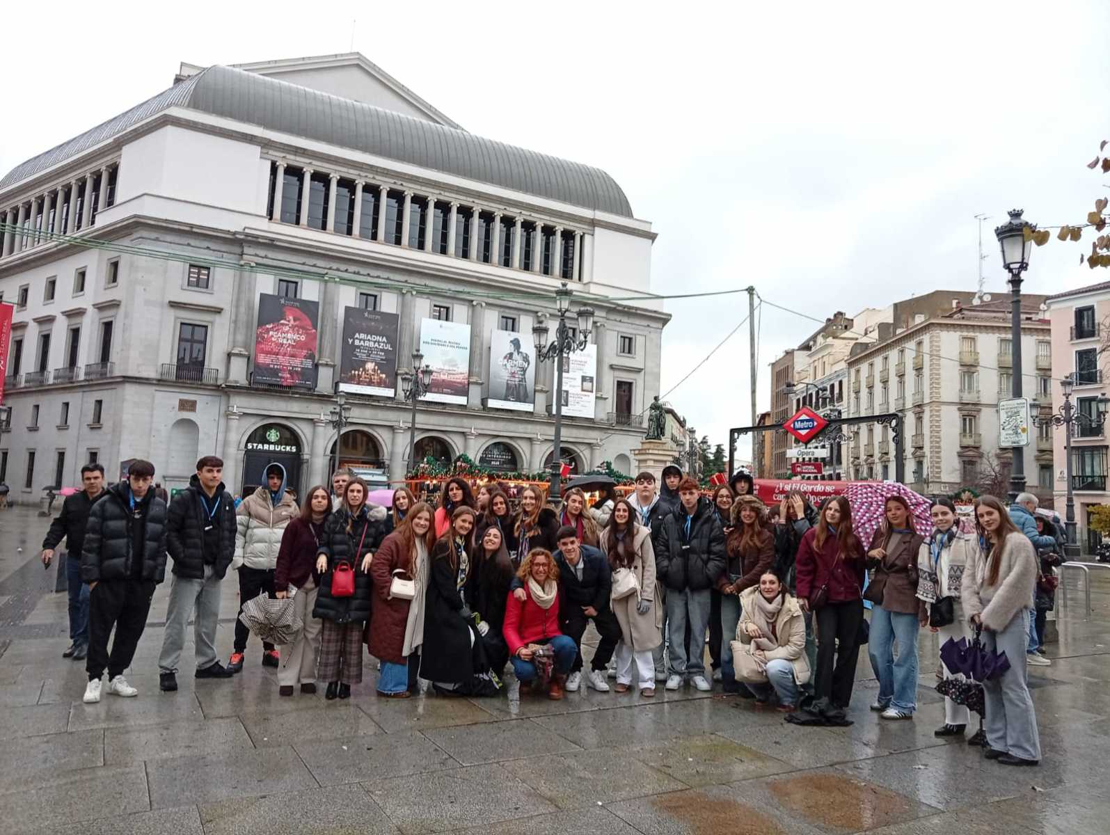 En el segundo y último día por Madrid, el alumnado de 2º de Bachillerato ha visitado por la mañana las calles del casco histórico y sus sitios más emblemáticos, como la Puerta del Sol, el Palacio Real, la Catedral de la Almudena y Plaza Mayor. En este último, los estudiantes han visitado el Mercadillo Navideño, donde han hecho unas compras para sus respectivas casas. Por la tarde, alumnado y profesorado han disfrutado de una cálida merienda todos juntos y para finalizar, han realizado un paseo por el famoso Parque “El Retiro”.