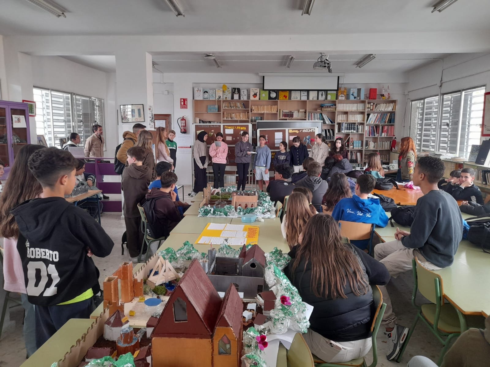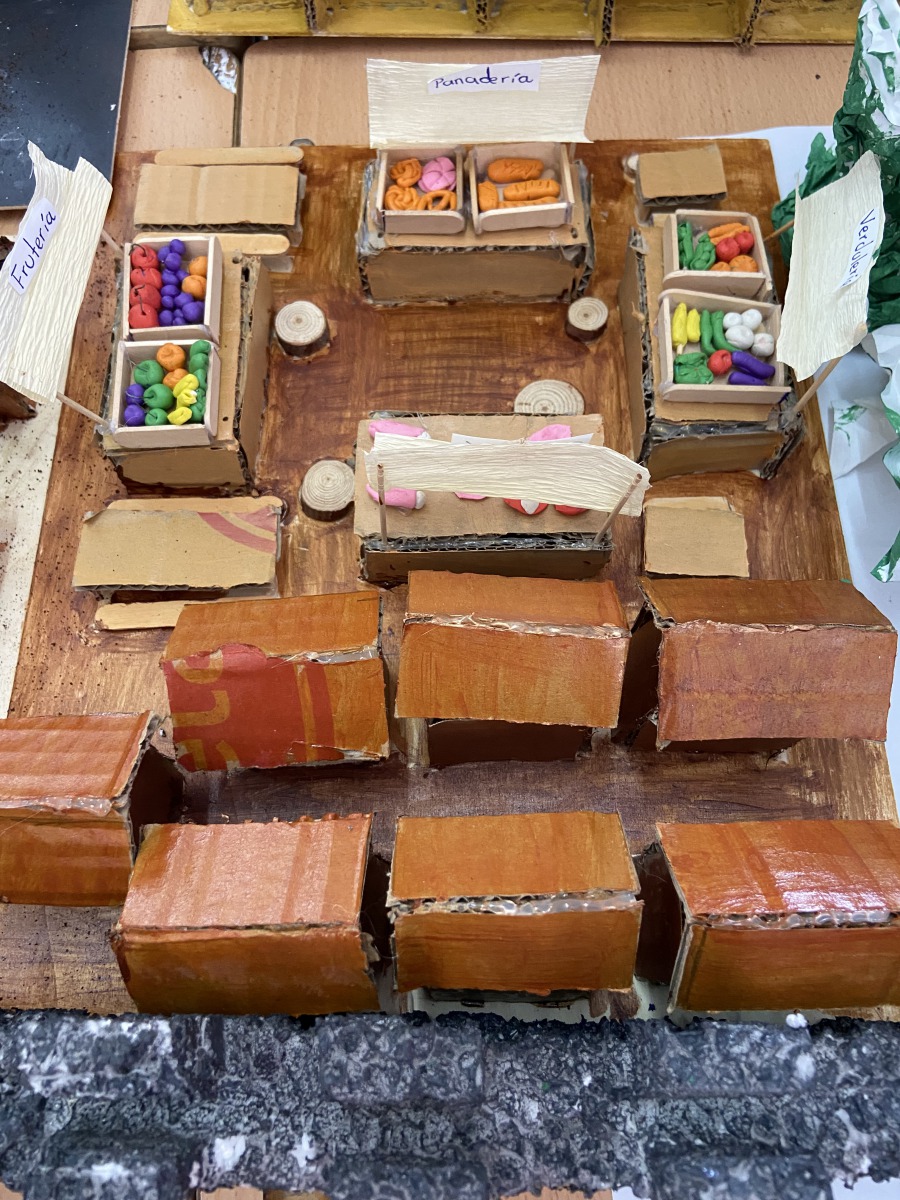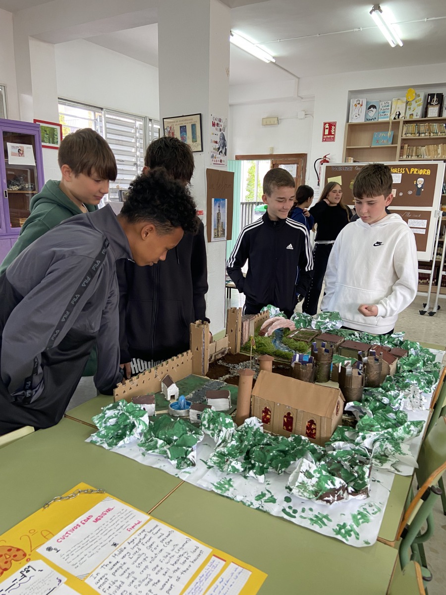 There was an exhibition of three beautiful Medieval Towns built by Students of Technology 2º ESO. Each town had a church or cathedral, a castle, a market, a well, a bridge… The students have been very creative and have used all sorts of recycled materials.
