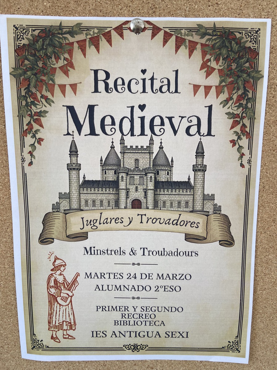 The Department of Lengua Castellana and the English department organized a medieval poetry reading. Some very famous “romances” and some of the popular poems from the book “The Canterbury Tales” by Geoffrey Chaucer were read.