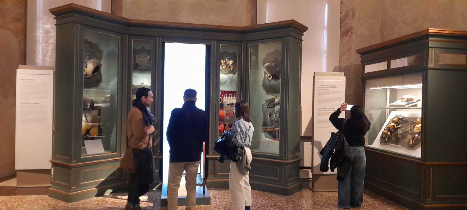 A continuación, bajo una fina lluvia, que ha sido el único atisbo de mal tiempo en toda la semana, nos adentramos en el laberinto de torres de Bolonia hasta llegar al Museo Palazzo Poggi, una de las sedes universitarias que acoge exposiciones culturales al tiempo que muestra su riquísimo patrimonio docente ayudando a entender al tiempo que a admirar a aquellos que viven por y para la educación de los que vienen después. Nos han llamado la atención los modelos anatómicos para el estudio, así como la tablillas para la reproducción de grabados de fauna y flora. Por último, la visita de la biblioteca universitaria, que invita a querer acercarse a todo aquel conocimiento o a quedarse a vivir entre volúmenes.