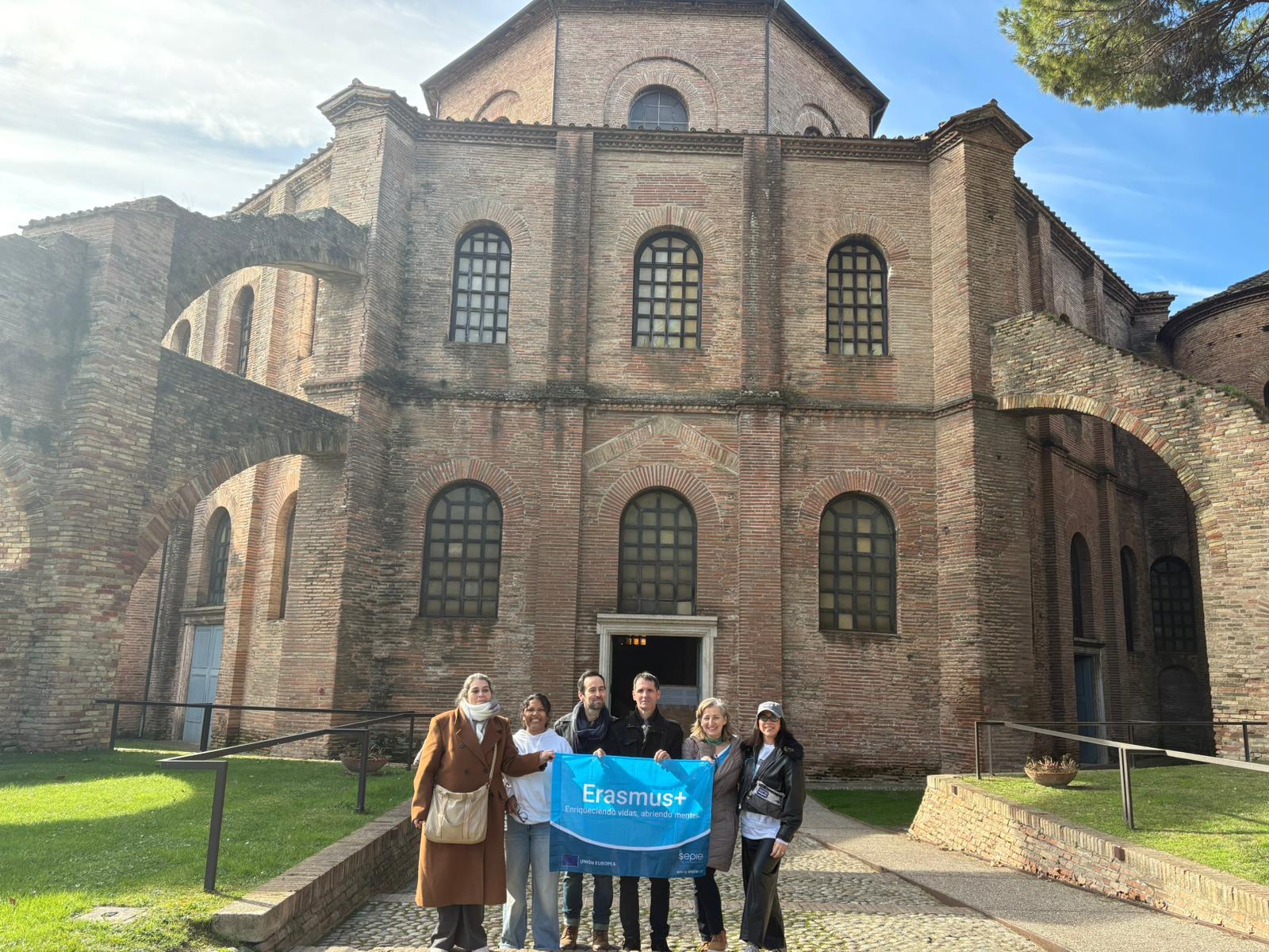 Prima di partire per Bologna… nos hemos detenido ante la Tumba de Dante Allighieri, autor de la “Divina Comedia”, obra cumbre de la literatura italiana y universal. Carlos, nuestro maestro, nos ha realizado una disertación acerca de este viaje alegórico de Dante.